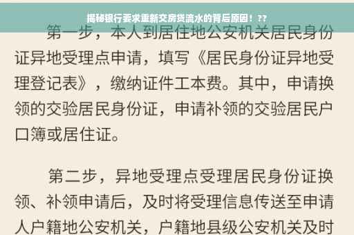 不少房贷客户反映其银行突然要求他们重新提交房贷流水,这一现象在金融领域引发了广泛的热议和关注,本文将从事件背景、原因、影响、应对措施及注意事项等方面进行详细解读,帮助大家更好地理解这一现状。