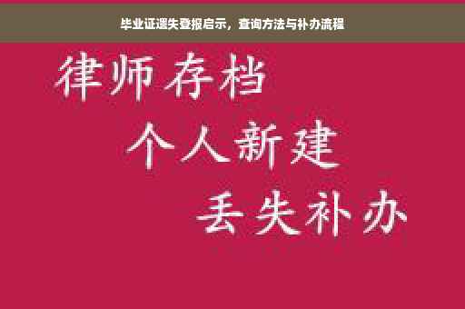摘要:本文介绍了毕业证遗失后的登报启示及查询方法。首先提醒毕业生注意保管好自己的毕业证书,若不慎遗失,可通过报纸等媒体发布遗失启示。提供了查询毕业证信息的途径,包括学校官网、教育部门网站等。读者可按照文中所述步骤操作,以便在遗失后尽快找回或证明自己的学历信息。
