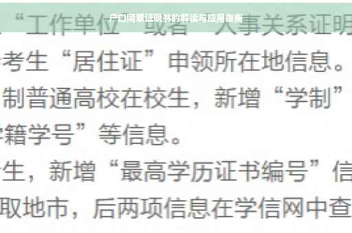 摘要:,,本文详细解读了户口同意证明书的内容及应用场景。户口同意证明书是用于证明个人对户口迁移或变更持同意态度的文件。文章介绍了该证明书的含义、用途,包括在求职、入学、办理证件等方面的实际应用,并强调了其重要性。提醒读者在办理过程中需注意的事项,以确保流程的顺利进行。