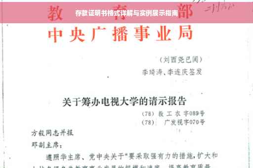 摘要:本文将详细介绍存款证明书的格式,包括必要的信息和细节。通过实例展示,让读者了解如何正确填写存款证明书。内容涵盖存款证明书的用途、格式要求、填写要点等,旨在帮助读者了解存款证明书的重要性及其正确使用方法。