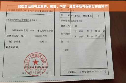 摘要:,,本文介绍了赔偿款证明书的相关内容,包括其格式、内容、注意事项以及案例分析。通过详细阐述赔偿款证明书的构成,帮助读者了解如何撰写一份完整、规范的赔偿款证明书。通过案例分析,让读者更好地理解在实际操作中应注意的问题,以便在需要时能够正确、有效地出具赔偿款证明书。