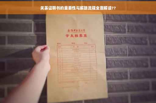 摘要:,,关系证明书是一种证明个人之间关系的法律文件,具有重要的法律效力。它广泛应用于各种场合,如家庭、法律、社会等。本文将全面解读关系证明书的重要性,包括其在证明个人身份、维护合法权益、解决纠纷等方面的应用。本文还将详细介绍关系证明书的解除流程,包括解除条件、解除程序及注意事项等。帮助读者更好地了解和使用关系证明书,维护自身合法权益。