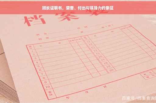 在学校的日常教育生活中,班长是一个班级的核心与灵魂,作为班级的代表,班长不仅要具备卓越的学业成绩,还需拥有卓越的领导能力和良好的人际关系,班长证明书不仅仅是一张纸质的证明,更是对班长辛勤付出和领导能力的认可与肯定,本文将深入探讨班长证明书的重要性与价值,以及背后所蕴含的辛勤付出与领导力体现。