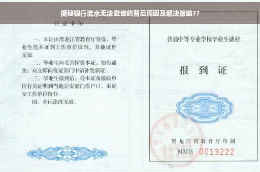 在日常工作和生活中,我们有时会遇到金融方面的问题,其中之一便是无法查询银行流水,面对这种情况,很多人可能会感到困惑和无助,本文将详细剖析银行流水无法查询的原因,并为读者提供解决方案和建议,帮助大家更好地应对这一问题。