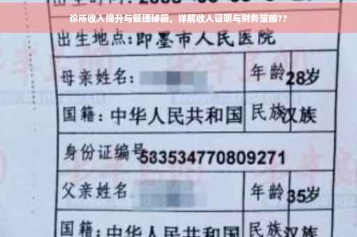 在现代社会,诊所作为医疗服务的重要载体,面临着日益激烈的竞争,如何在这样的环境下提高诊所收入并实现有效财务管理,成为了众多诊所经营者关注的焦点,本文将围绕诊所收入证明这一主题,深入探讨如何提高诊所收入及有效管理财务,为诊所经营者提供有益的参考。