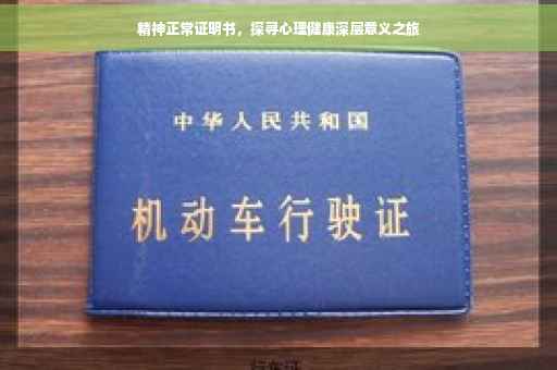 摘要:,,本文旨在探讨精神正常证明书的重要性,并探寻心理健康的深层意义。通过阐述精神正常证明书的作用和意义,强调心理健康对个体和社会的重要性。文章进一步探讨心理健康的深层内涵,包括情感、认知和行为等方面的平衡状态。通过了解心理健康的深层意义,我们可以更好地关注自身精神健康,提高生活质量和社会适应能力。