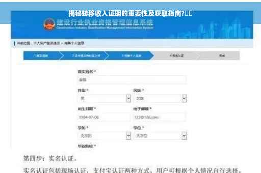 在当今社会,随着经济的发展和就业形式的多样化,越来越多的人开始关注自己的收入证明问题,转移收入证明作为其中的一种重要证明,对于个人和企业都具有重要的意义,本文将详细介绍转移收入证明的概念、作用以及如何获取,帮助读者更好地了解和运用这一证明。