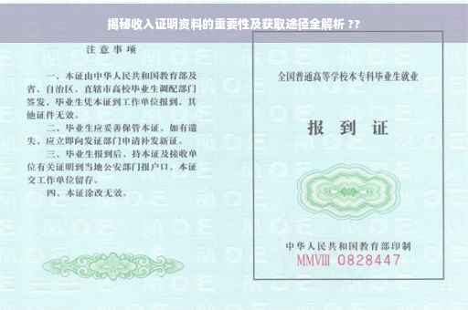 在当今社会,随着就业竞争的日益激烈,收入证明资料逐渐成为个人求职、贷款申请、信用卡办理、租房等场合的必备材料,一份完整的收入证明资料不仅能够展示个人的经济实力,还能为个人信用背书,提高成功申请的几率,本文将详细介绍收入证明资料的重要性、获取途径及注意事项,帮助大家更好地了解和运用这一重要资料。
