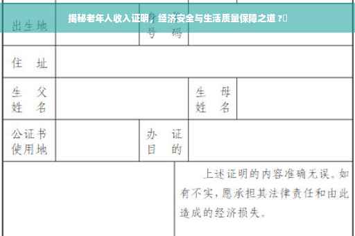 随着社会的不断发展,老年人的生活质量和经济安全问题越来越受到人们的关注,收入证明作为老年人经济保障的重要组成部分,对于他们的生活质量和社会福利的获取具有至关重要的意义,本文将深入探讨老年人的收入证明问题,以期为相关政策制定者和广大社会成员提供一些有益的参考。