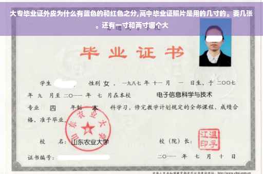 大专毕业证有红色的,也有蓝色的等等。红色和蓝色的毕业证只是毕业证封面即外壳上的不同而已,而毕业证内的证书内容是一样的。凡是可以在学信网查到的毕业证,不管是什么颜色都是真的,都是属于国家承认的学历。