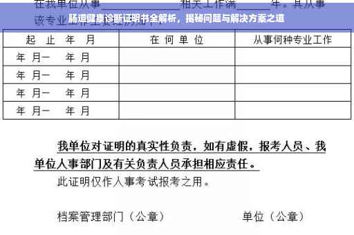 肠道健康是整体健康的重要组成部分,它涉及到我们的消化系统、免疫系统以及整体健康状态,随着现代生活节奏的加快和饮食习惯的改变,肠道问题日益普遍,本文将为您呈现一份详尽的肠道诊断证明书,揭示肠道问题的真相,并提供实用的解决方案。