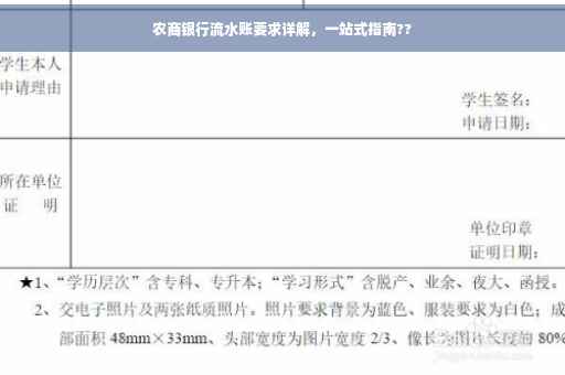 随着金融行业的快速发展,农商银行作为服务广大农村地区的金融机构,其业务涉及面越来越广,在办理贷款、信用卡等金融业务时,流水账是银行评估个人或企业信用状况的重要依据,本文将详细介绍农商银行流水账的要求,帮助广大客户更好地了解并满足相关要求。
