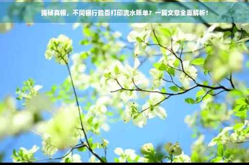 本文将带你全面了解不同银行是否能打印流水账单的细节。通过简洁明了的叙述,揭示真相,让你轻松掌握所有相关信息。不论你身在何处,只需阅读此文,即可明白各大银行的流水打印规定。不论是个人还是企业,此文都将为你提供必要的指导和帮助。跟随我们的脚步,一起探索银行流水打印的奥秘吧!