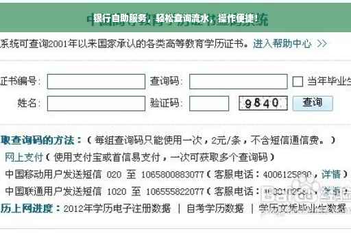 许多银行的营业大厅都设有自助查询机,客户只需插入银行卡、输入密码,即可查询账户流水,这种方式通常可以查询近几个月的流水,部分银行自助查询机可能支持更长时间的查询。