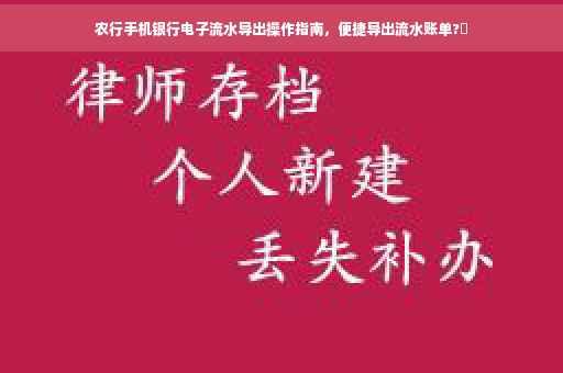 随着移动互联网的普及,银行业也逐步向数字化转型,中国农业银行作为国有大型商业银行,其手机银行服务深受广大用户欢迎,电子流水的导出功能,为用户提供了便捷查询和打印银行流水的途径,本文将详细介绍农行手机银行电子流水导出的操作步骤,帮助广大用户更好地利用这一服务。