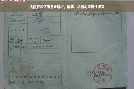 摘要:本文将详细介绍法院解冻证明书的内容,包括其流程、作用与重要性。通过本文,读者可以了解到解冻证明书的申请流程、所需材料以及其在法律程序中的重要性。还将解释解冻证明书的作用,包括帮助恢复被冻结的财产、保障合法权益等。本文旨在帮助公众更好地了解法院解冻证明书的相关知识,以便在需要时能够正确申请并发挥其在法律程序中的作用。
