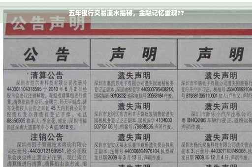 随着数字经济的飞速发展,银行业作为金融体系的核心组成部分,承担着日益重要的角色,人们在日常生活中频繁地与银行打交道,无论是存款、取款、转账还是其他金融服务,随着时间的推移,五年前的交易流水记录逐渐成为了人们关注的焦点,本文将带您走进五年前银行的交易流水世界,探寻那些年的金融记忆。