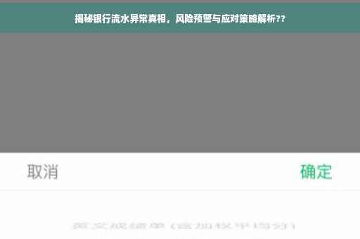 近年来,随着金融科技的飞速发展和银行业务的不断创新,银行流水作为个人和企业经济活动的重要记录,越来越受到广泛关注,不少人在日常生活中却突然收到银行通知,被告知自己的流水出现异常,本文将深入探讨银行流水异常背后的原因,分析风险预警的重要性,并为大家提供应对之道。