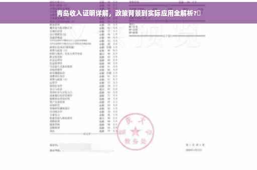 摘要:本文将详细介绍青岛的收入证明,从政策背景到实际应用全面解读。通过了解相关政策和规定,读者可以更好地理解收入证明在日常生活和工作中的重要性。本文不仅介绍了收入证明的基本概念,还探讨了其在实际应用中的具体操作和注意事项。