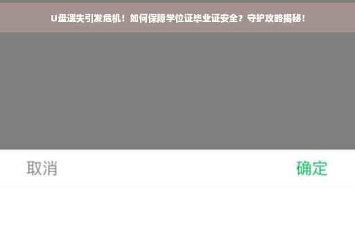 摘要:U盘遗失可能引发个人重要证件信息泄露的风险,如学位证和毕业证等。为保护这些信息的安全,建议采取以下攻略:立即挂失U盘,避免信息泄露;备份重要证件信息至云端或电脑,确保数据安全;使用加密技术保护电子文档,提高安全性。提醒广大毕业生和在校生,务必重视个人信息安全,防范未然。