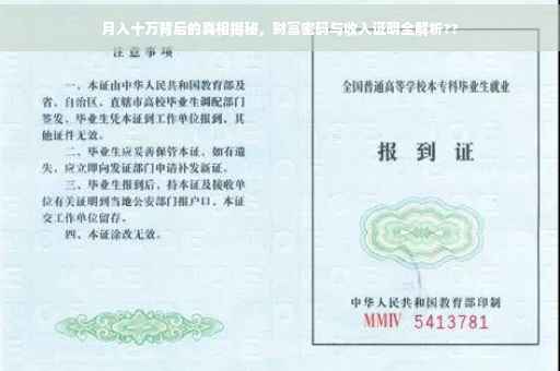 揭秘月入十万背后的真相,这篇文章将带你了解高收入背后的秘密。收入证明不仅是展示个人经济能力的证明,更是财富的密码。本文将教你如何巧妙利用收入证明,通过理财规划、投资增值等方式,实现财富的积累与增值。跟随本文指引,你将开启财富增长的大门,走向更加富裕的人生之路。