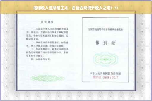 摘要:本文将揭示如何合法合规地加工收入证明以提升收入。通过深入了解相关法规和政策,我们将探讨合法的方式来实现这一目标,包括提高职业技能、寻求更高薪酬的工作机会、合理规划个人财务和投资等策略。这些方法旨在帮助个人在遵守法律的前提下,实现收入的稳步增长。