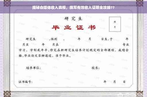 摘要:本文将揭示自媒体收入的真相,介绍如何撰写一份有效的收入证明。通过分享自媒体行业的盈利模式、收入来源以及提高收入的方法,让读者了解自媒体人的收入状况。本文还将介绍撰写收入证明时需要注意的要点和技巧,帮助自媒体人更好地展现自己的经济实力和收入来源,为各种需求提供有力的证明。