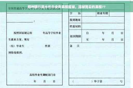 随着社会的快速发展,银行业务日益繁忙,在郑州这座繁华的城市里,时常有人因为工作忙碌或其他原因无法亲自前往银行办理流水账单,这时,代办银行流水业务似乎成了一个便捷的解决方案,但真相究竟如何呢?本文将带您深入了解郑州代办银行流水的现象。
