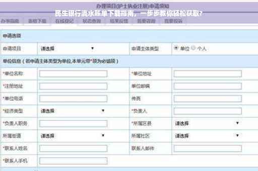 摘要:本篇攻略将教你如何轻松下载民生银行流水账单。步骤详尽,从登录民生银行官网开始,到选择账户、查询流水账单、下载账单等,让你一步步完成操作。本攻略简单易懂,适合广大民众获取自己的银行流水账单,方便个人财务管理。