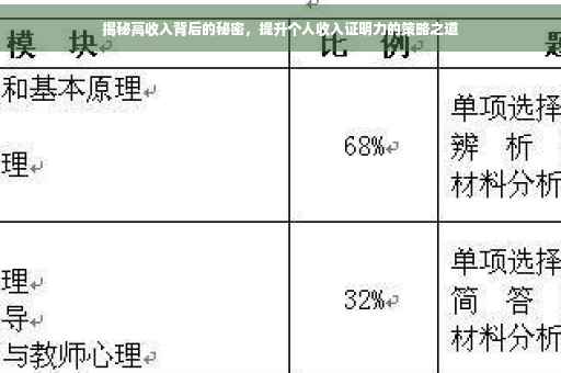 在当今社会,随着经济的发展和竞争的加剧,越来越多的人开始关注如何提高自己的收入水平,收入证明作为展示个人经济实力和信用状况的重要依据,对于求职、贷款等方面都具有重要意义,本文将深入探讨收入的证明背后的秘密,并分享提升个人收入证明力的方法和建议。