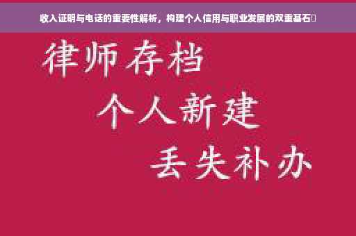 在当今社会,无论是求职应聘、贷款购房还是信用卡申请,收入证明与电话的作用日益凸显,它们不仅是个人信用评估的重要依据,更是展示个人职业发展与经济实力的关键环节,本文将深入探讨收入证明与电话的重要性,帮助读者更好地利用这两者打造个人信用与职业发展的双翼。