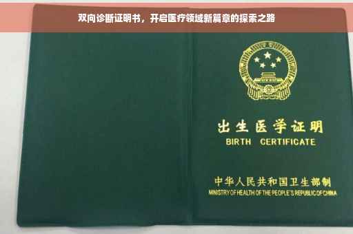 在当今社会,医疗领域的发展日新月异,人们对于健康的需求也日益增长,双向诊断证明书作为医疗过程中的重要环节,对于患者和医生来说都具有举足轻重的意义,本文将详细介绍双向诊断证明书的作用、内容、流程以及实际应用,带您了解这一医疗领域的新篇章。