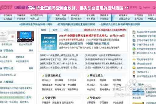 摘要:高中毕业证丢失,不必慌张。可以通过查询编号找回相关证明。全攻略包括:首先确认丢失证件的基本信息,如学校名称、毕业时间等;然后前往原学校教务处查询编号,或联系学校档案管理部门协助查询;也可通过学信网等在线平台进行查询。务必保留好相关证明文件,以备不时之需。