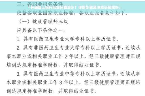 开通网上银行后,查询流水变得方便快捷,本文为您详细介绍了如何通过网上银行查询流水及相关注意事项和其他查询途径,掌握网上银行的使用技巧将为您的生活和工作带来更多便利,如有更多疑问,请随时咨询银行客服。