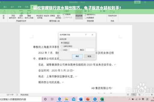 在现代社会,电子银行已成为我们日常生活中不可或缺的一部分,随着科技的飞速发展,越来越多的人选择使用网上银行服务来处理他们的财务事务,导出银行电子版流水是许多人在处理个人财务或进行财务规划时经常需要执行的一项任务,本文将详细介绍如何轻松导出银行电子版流水,帮助您更好地管理个人财务。