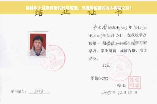 摘要:本文将揭示收入证明背后的计算逻辑,探讨个人收入的构成。通过阅读本文,您将了解不同收入来源的计算方式,包括工资、奖金、津贴、兼职收入等。本文还将介绍如何合理规划个人财务,实现收入的稳步增长。无论您是职场人士还是学生,本文都将为您提供有益的参考和建议。