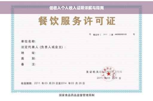 摘要:,,低收入个人收入证明是一份证明个人收入状况的文件,通常用于证明个人经济状况不佳,如申请贷款、租房等场合。该文件通常包括个人基本信息、收入状况、收入来源等详细内容。对于需要证明自身收入状况较低的人来说,低收入个人收入证明是一份重要的证明材料。