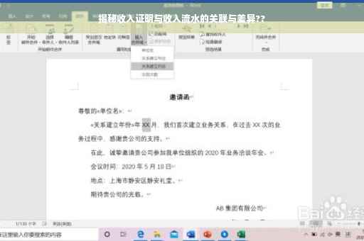 摘要:本文将探讨收入证明与收入流水之间的关系与差异。收入证明是用于证明个人或企业收入状况的文件,而收入流水则反映了收入与支出的实际流动情况。本文将揭示两者之间的关联,帮助读者更好地理解这两种概念,并了解它们在个人财务和企业运营中的重要性。