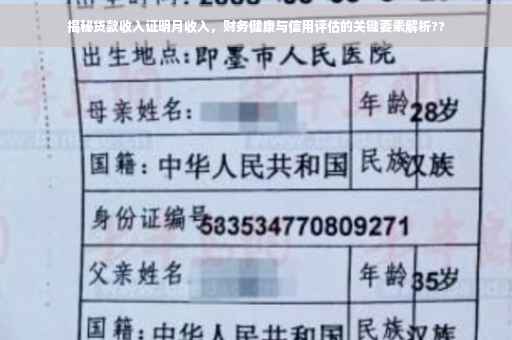 在当今社会,贷款已成为人们解决资金周转问题的重要途径之一,在申请贷款的过程中,收入证明是评估借款人信用状况的重要依据,本文将围绕贷款收入证明的重要性,以及月收入作为信用评估关键要素的作用,展开详细阐述。