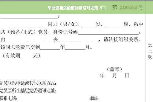 摘要:毕业证丢失可能会带来一系列麻烦,如求职、升学、证件遗失证明等。为应对此问题,应首先及时在原发证机构办理挂失手续并获取相关证明。可联系学校或教育部门,寻求协助并补办相关证明文件。为预防再次丢失,建议备份电子档或拍照保存,确保个人档案完整安全。