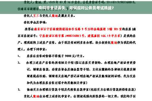 专科毕业证丢失,特别是在准备公务员考试时,确实是一个棘手的问题,毕竟,毕业证是证明你学历的重要证件之一,在报名、资格审查等环节都需要提供相关的学历证明,当遭遇专科毕业证丢失的困境时,一定要保持冷静,积极寻找解决方案。