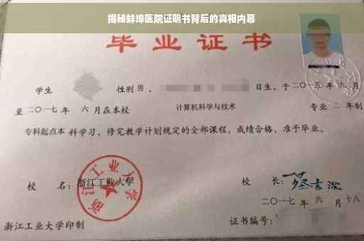 摘要:本文将揭示蚌埠医院证明书背后的真相。通过深入调查,发现一些令人震惊的事实,这些证明书背后可能隐藏着不为人知的秘密。本文将探究其背后的原因和真相,揭示医疗领域的一些不为人知的细节,引起公众关注和思考。