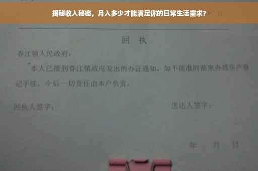 在当今社会,随着经济的不断发展和生活水平的提高,越来越多的人开始关注自己的收入状况,在职场中,收入证明成为了衡量一个人经济实力和购买力的重要指标之一,究竟月入多少才算是满足人的生活需求呢?本文将就此话题展开探讨。