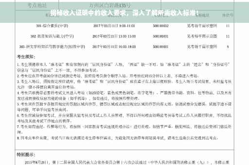 本文将深入探讨收入证明所需的收入标准。通过简洁明了的阐述,带你了解不同场合下的收入证明要求以及相应的收入标准。无论是办理贷款、申请职位还是其他场合,本文都能为你提供有价值的参考。阅读本文,让你对收入证明有更深入的了解。