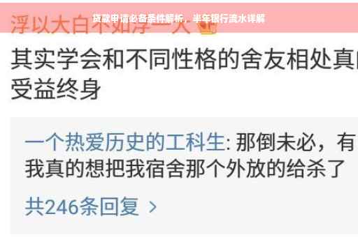 摘要:想要申请贷款,需满足银行流水等必备条件。半年银行流水是评估个人信用和还款能力的重要依据。申请者需提供近半年的银行流水账单,以证明收入稳定、信用良好。银行将根据流水的金额、频率和稳定性来评估贷款申请。确保流水真实、完整,有助于提高贷款成功率。详情可咨询银行工作人员。