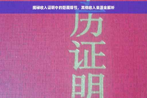 其他收入是收入证明中不可或缺的一部分,对于个人信用状况和还款能力具有重要影响,个人和企业应充分了解其他收入的构成和重要性,合理规划和管理其他收入,以提高个人经济实力和信用状况,通过多元化收入来源和合理配置资产,实现其他收入的持续增长,为个人和企业的发展创造更多机遇。