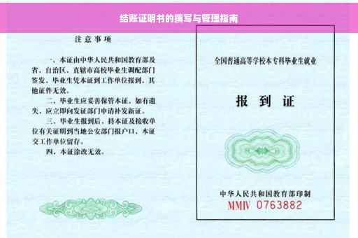 摘要:,,本文介绍了结账证明书的撰写与管理。内容包括证明书的格式、内容、撰写要点以及管理规范。结账证明书是企业财务活动中重要的文件之一,对于保障企业资金安全、规范财务管理流程具有重要意义。本文将为您提供一份详细的结账证明书撰写指南和管理规范,以确保结账证明书的准确性和有效性。