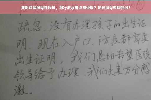 关于成都摇号购房是否需要交银行流水的消息引起了广泛关注,对于许多准备在成都购房的人来说,这无疑是一个重要的议题,在这篇文章中,我们将深入探讨成都摇号购房的相关问题,特别是是否需要交银行流水的问题,我们也将解析这一政策背后的原因,以及它可能对成都房地产市场产生的影响。
