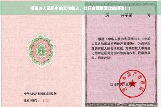 揭秘收入证明中的其他收入填写要点。在填写过程中,需注意合理性和准确性。其他收入部分包括各种津贴、奖金、兼职收入等,应详细列出并注明来源。合理填写有助于提高信用度和贷款审批通过率。务必确保所填写内容真实可靠,避免虚假陈述。正确填写收入证明,有助于个人财务规划和社会信用体系建设。