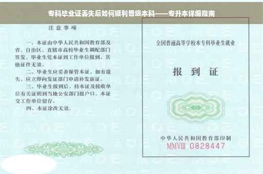 专科毕业证丢失后如何顺利专升本并非易事,但只要采取正确的应对措施,你仍然可以实现自己的目标,本文为你提供了详细的步骤和解决方案,希望能够帮助你,在追求学历和职业的道路上,会遇到各种挑战和困难,但请相信自己,勇往直前,通过不断地学习和努力,你一定能够实现自己的梦想。